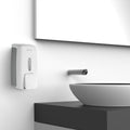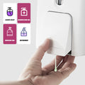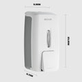 Sleek Hand Soap Dispenser:interhasa! wall mounted soap dispenser is made of durable ABS plastic material. Modern and sleek design makes it a beautiful decor for bathroom. Product information: 0.47kg 110*90*225mm 800ml 2 stickers 4 screws 1 key.