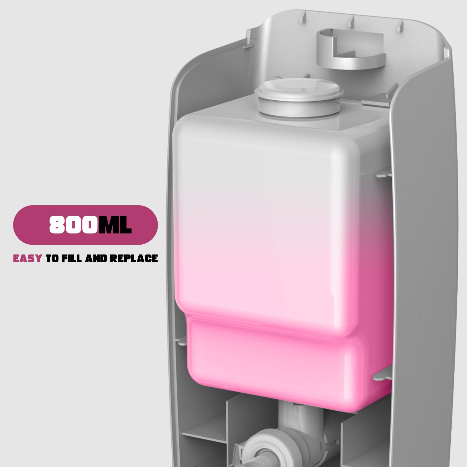 Liquid & Gel:Manual soap dispenser has 800ml capacity. Single out 0.8~1ml per activation to reduce waste. Works with most free-flowing, all-purpose brands liquid and gel soap. Conveniently sized and dispenses up to 1000 times per fill, making it economical to use.